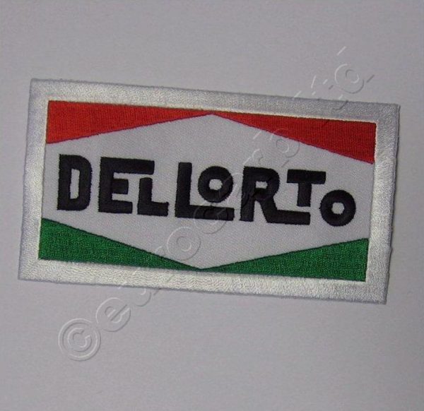 A Dell’Orto logo patch measuring 119 x 65mm to be sewn onto jackets, bags, etc.
