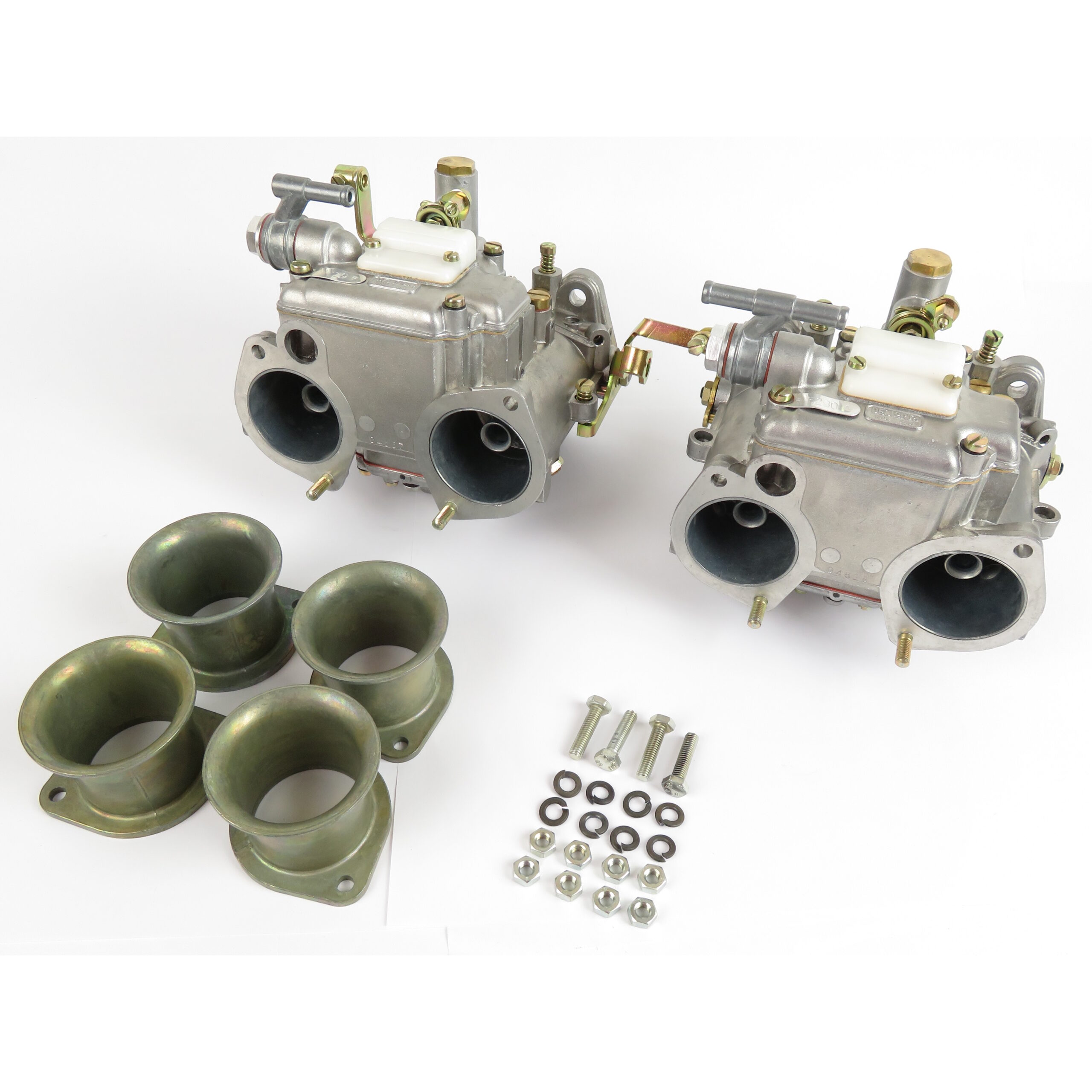 These carburettors are original unused stock, supplied as shown with cast trumpets and fixings.
