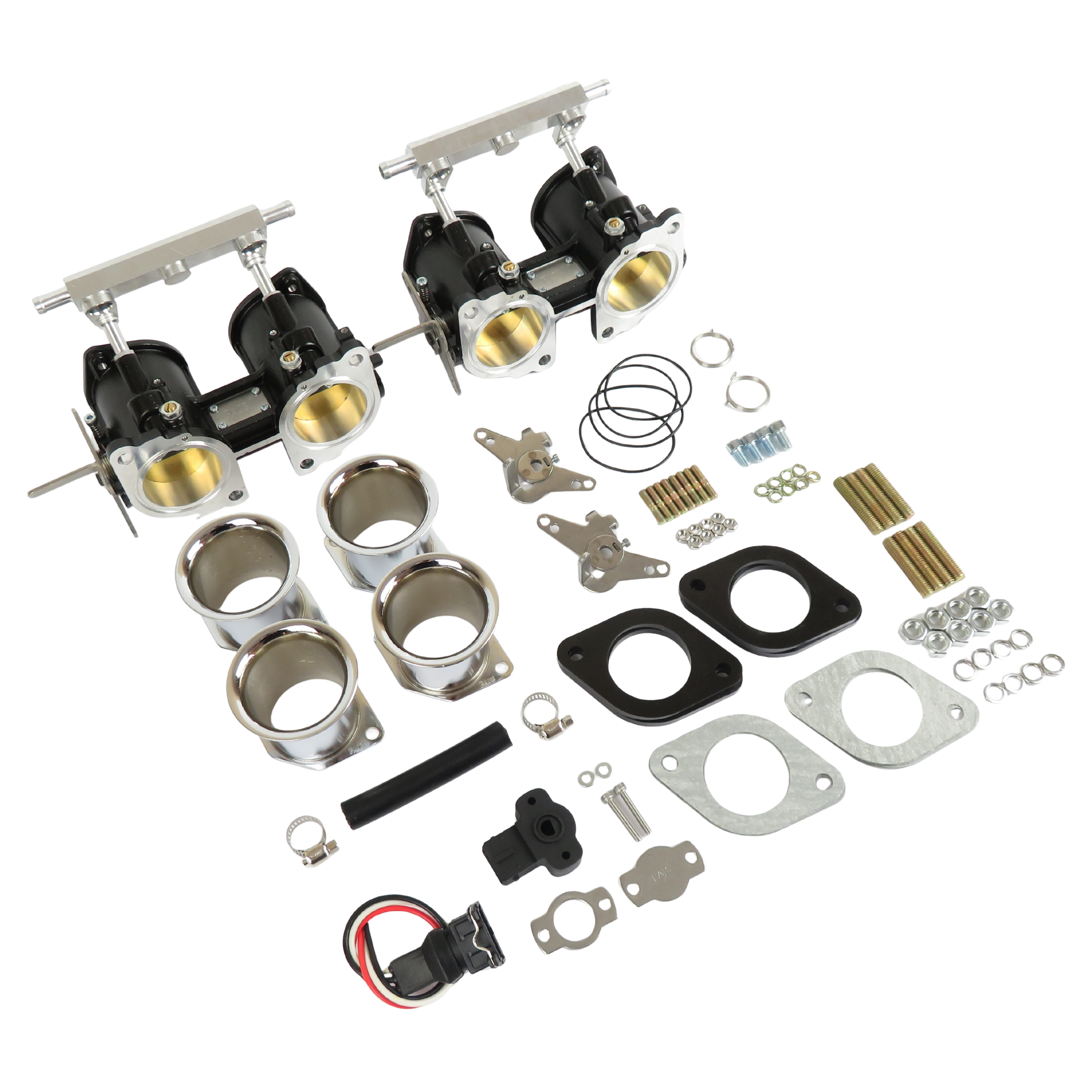 Twin FAJS 45 IDF throttle body kit as an alternative to Weber 45 IDF/ Dellorto 45 DRLA carburettors.